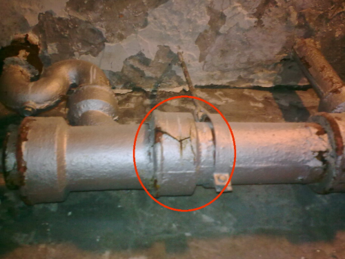 3、先把铸铁管拿铸铁焊条改成立式朝向下水,接着在后接管件顶端预置一个接头,再把自家下水的PVC管接到接头里面,把此接头朝着自家下水的窟窿,之后在铸铁接头内,PVC管周遭打上防水腻子,最后抹上防水胶即可。